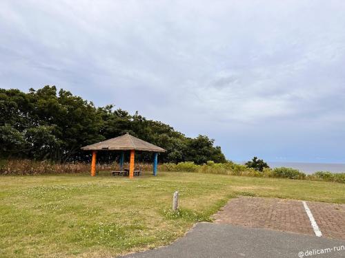 すぐ左に曲がって真っ直ぐ進むと左手に小高い丘が見えてきます。ここに「望洋台キャンプ場」があります。