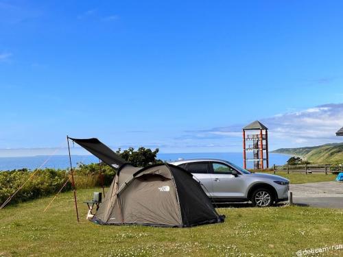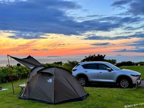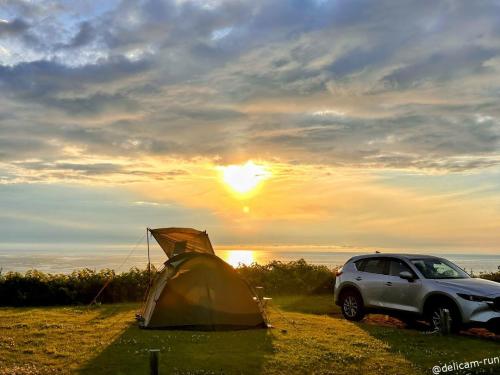 日本海に面した絶景キャンプ場「望洋台キャンプ場」の電源なしオートサイトやフリーテントサイトからは時間と共に移り変わる絶景を楽しむことが出来ます。