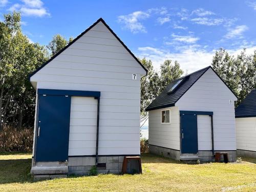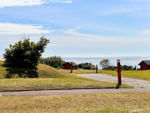 こちらは少し中腹にあるオートバンガローB9-B10。まだ少し高台にあるため、多少の日本海が見渡せます。