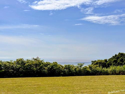 超広大かつ綺麗に刈られた芝生スペース。奥側からはテント目線だと直接海を見渡すことが出来ません。