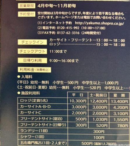 ●臨時サイト:2,400円(電源付10A 18サイト) ※7月海の日~9月シルバーウィーク まで